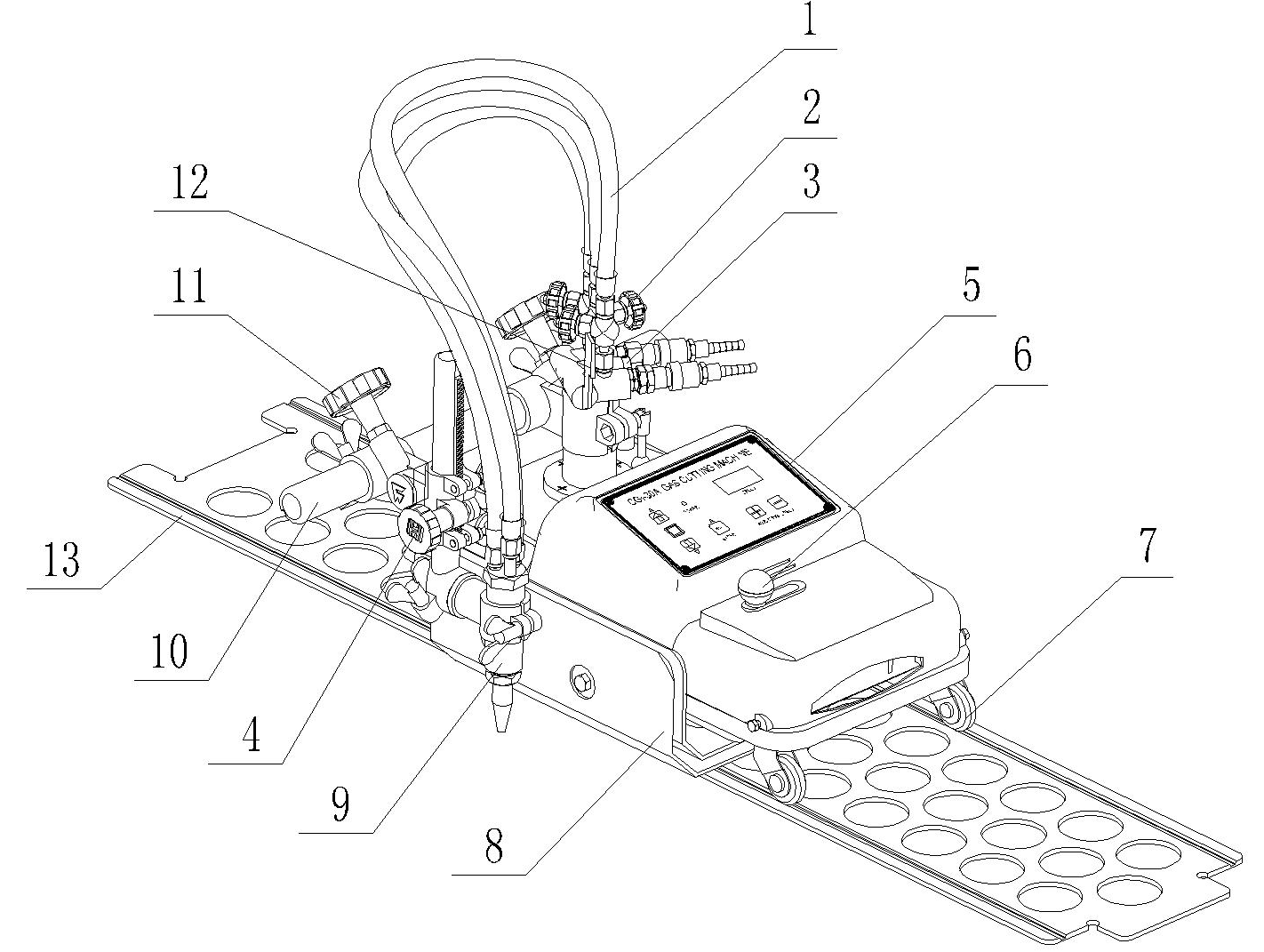 1.軟管:在氣體分配器和割炬之間連接,三條      8. 隔熱板:阻礙熱量向機器內部擴散。