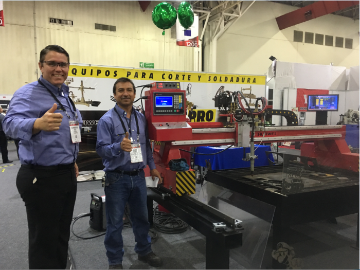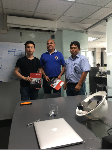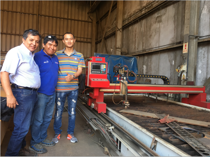華威工程師在秘魯與客戶一同拜訪客戶并保養切割機器。